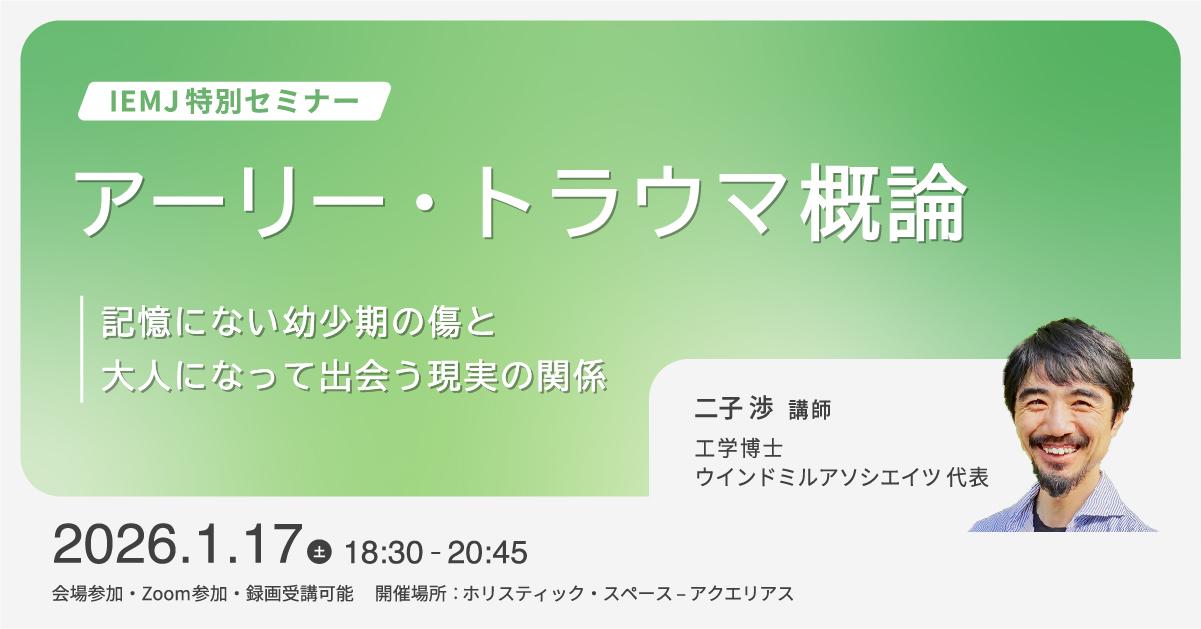 | 2026年1月17日【特別セミナー】アーリー・トラウマ概論 〜記憶にない幼少期の傷と、大人になって出会う現実の関係/二子 渉 |